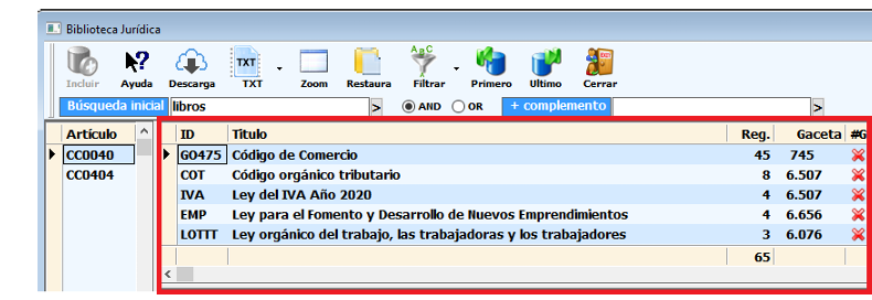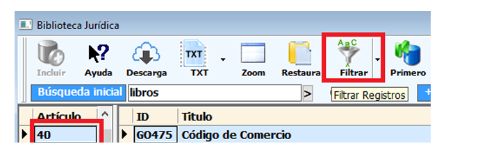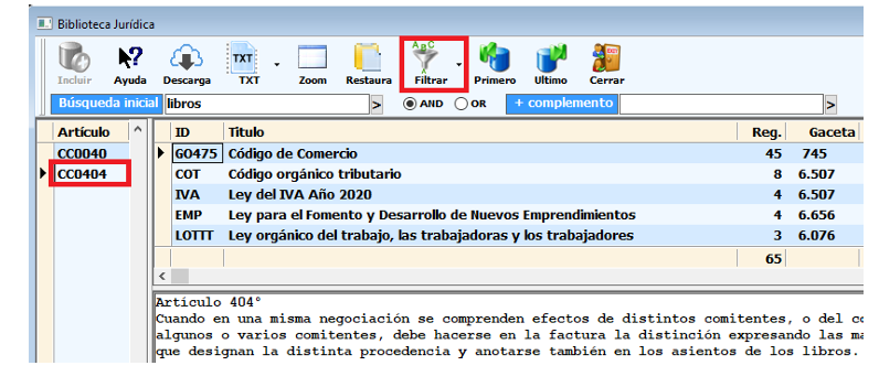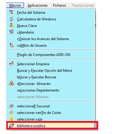 1.2 Desde la opción “Biblioteca Jurídica” ubicada en la sección macros del sistema.