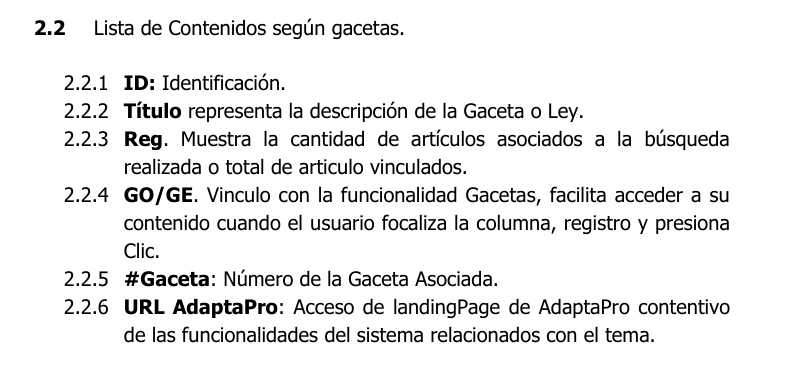 Su contenido proviene de la digitalización de gacetas oficiales desde archivo en formato PDF convertidos en textos digitales, luego almacenados en la base de datos, facilita realizar búsquedas mediante el potencial del motor de la base de datos.