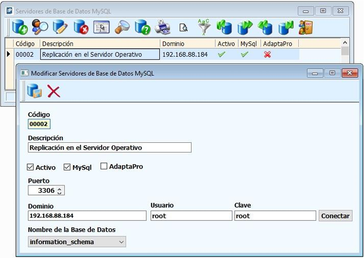 4. Alternativa / Solución: AdaptaPro implementa un proceso automático que debe ser realizado con todo ingreso, la comparación de la última factura registrada en el servidor de replicación Vs la última factura del Servidor Actual para informarle al usuario si la replicación esta activamente operativa, además, valida si el servidor alternativo se encuentra activo.