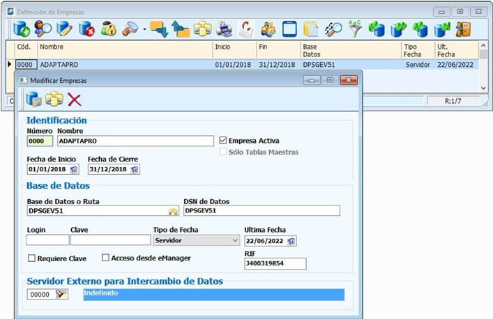 “Importar registros” y base de datos desde la versión anterior en este caso “el servidor en producción”.