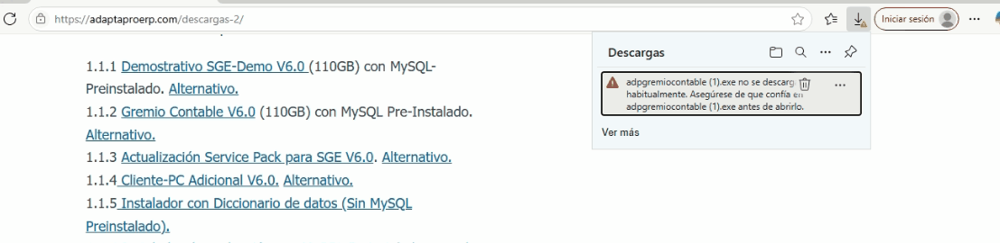 - También puede descargarlo desde el sitio alternativo, seleccionando adpgremiocontable.exe desde el Sitio alternativo.