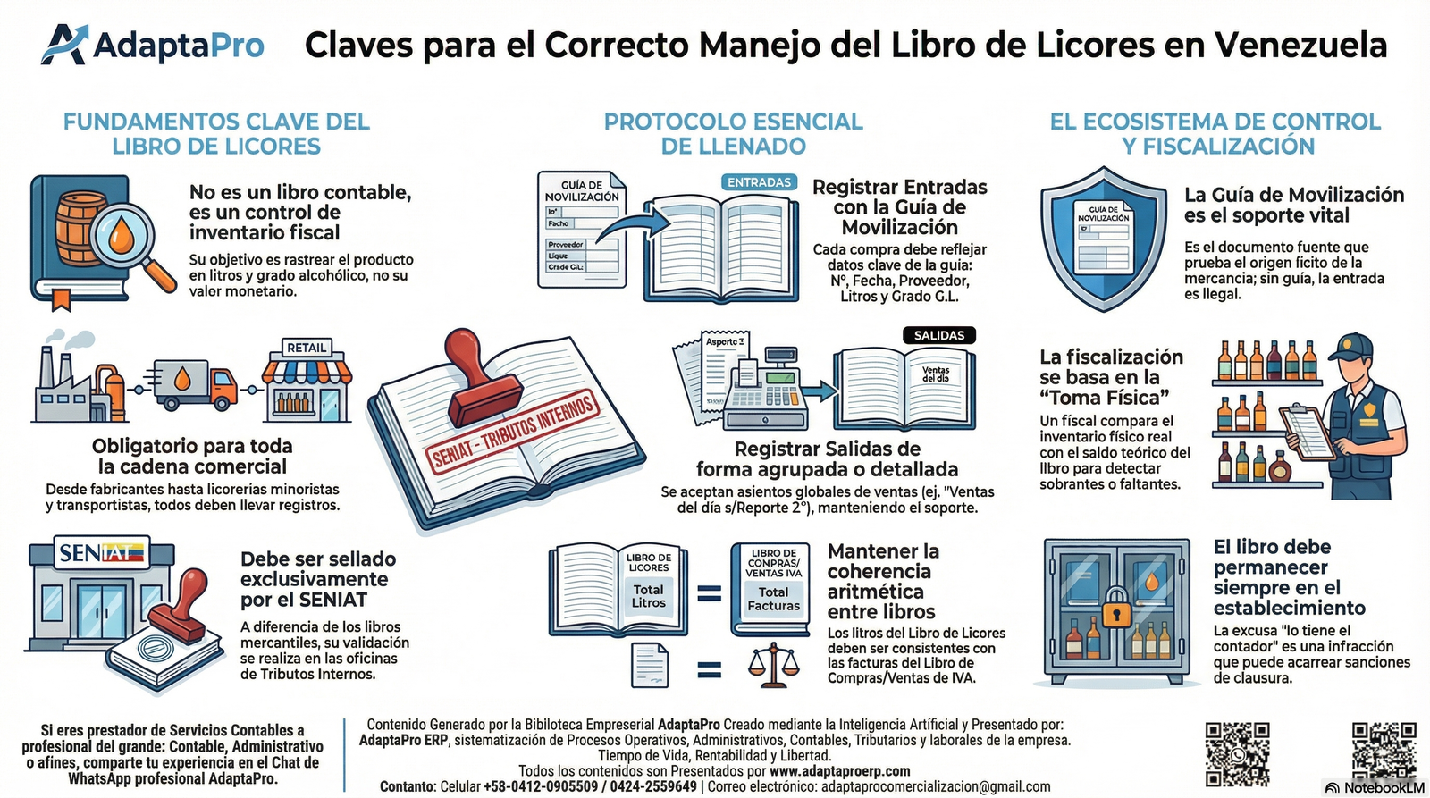 El Libro de Control de Entradas y Salidas de Especies Alcohólicas no es un simple registro contable; es un instrumento de fiscalización técnica. Este documento detalla la rigurosidad necesaria para evitar sanciones pecuniarias y clausuras, integrando la normativa de la LIAEA y las facultades de inspección del SENIAT en un flujo operativo para el contribuyente.
