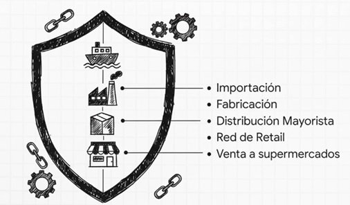 1.5Consorcio Licorero Vertical: Importacion, Fabricación, Mayorista y Retail. Con sucursales en las principales ciudades del pais, venta directa a cadenas de supermercado y red de licorerías-retail en las localidades en cada region del pais.